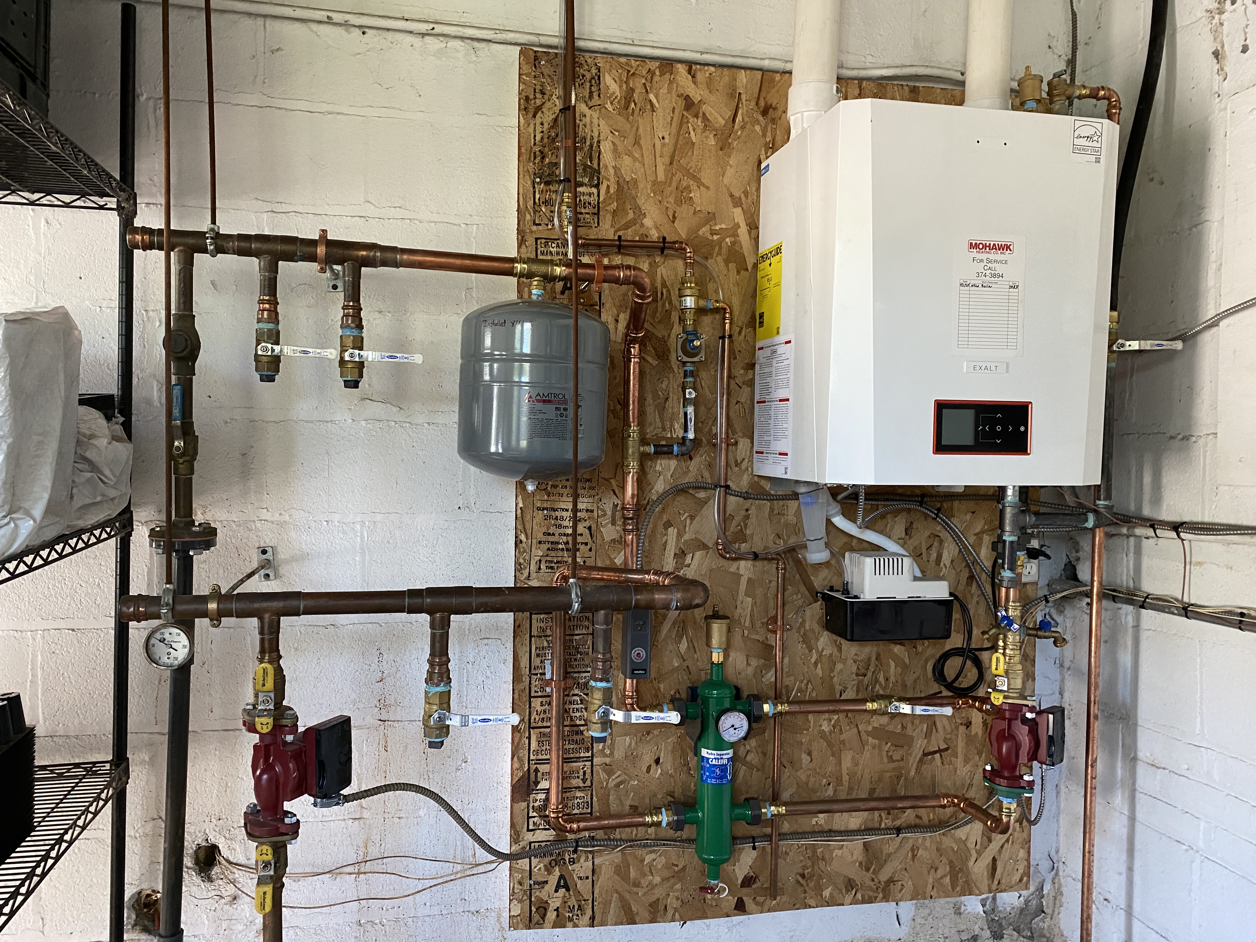 We focused our attention on exploring a new system that would be more efficient and reliable for heating the coils used for heating the bottom of the seedling trays. The germination rate increases drastically with bottom heating compared to forced-air heating systems. Plants prefer warm roots. We researched several companies and went with Mohawk Heating Co. Inc. They removed the existing boiler and installed a new wallhung high efficiency propane water boiler. This system will be much more efficient and cleaner. CCESC staff are looking forward to a much better growing season this winter with this new system.